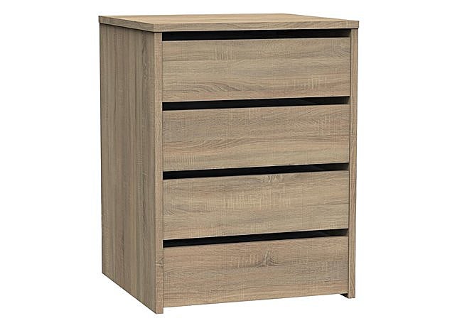 Los cuatro cajones ofrecen una capacidad sorprendente para ropa, documentos o accesorios, facilitando el orden diario. El tono cálido del roble Cambrian, con vetas y nudos marcados, aporta un aire acogedor que realza la decoración sin sobrecargarla.
