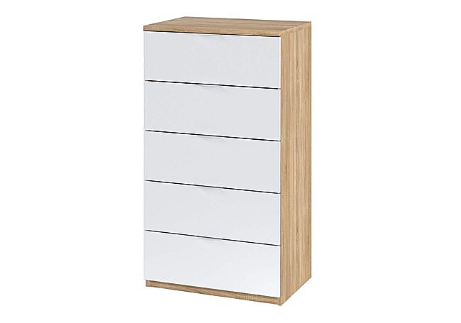 Con cinco cajones espaciosos y suaves al abrir, es práctica para guardar ropa y complementos. Su estructura robusta, fabricada en materiales de alta densidad y certificada por su sostenibilidad, garantiza durabilidad y fácil mantenimiento. Ideal para quienes buscan optimizar el espacio sin renunciar al diseño, se integra en dormitorios de distintos estilos.