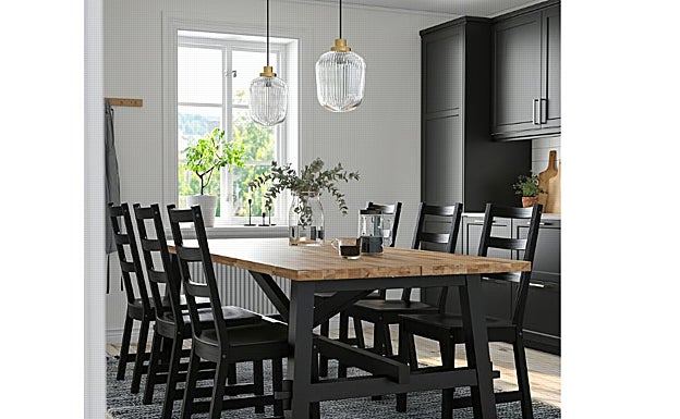 Si quieres renovar tus sillas ahora de cara a las fiestas, Ikea te propone este modelo con el que ahorrarás 10€ en tu compra. Está fabricada en acacia, puedes elegir entre barniz incoloro y color negro y su precio final es de 49€.
