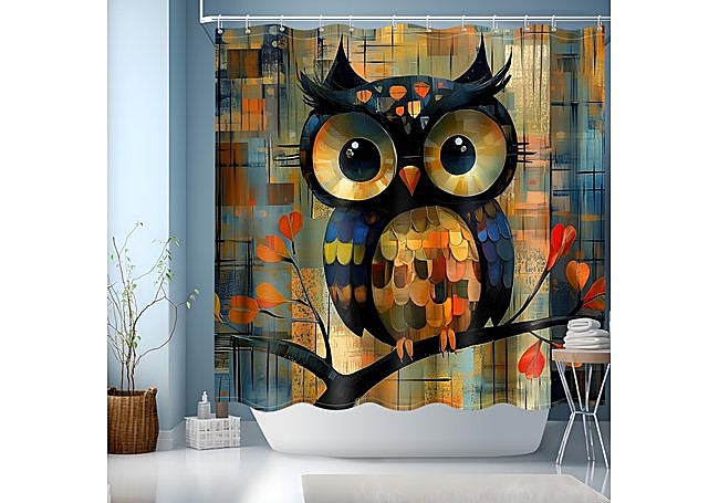 CORTINA DE DUCHA CON BÚHOS DE JINGYOU