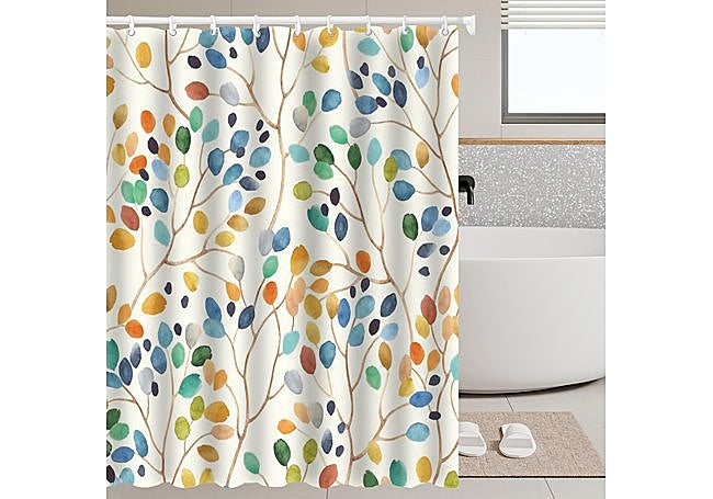 Con un estampado de hojas en impresión 3D, esta cortina de ducha de Homirty está fabricada en poliéster impermeable y de secado rápido en formato 180 x 200 cm. El tejido es ligero y fácil de limpiar, e incluye 12 ganchos para la instalación. Presenta un diseño moderno y colorido, y es resistente al moho.