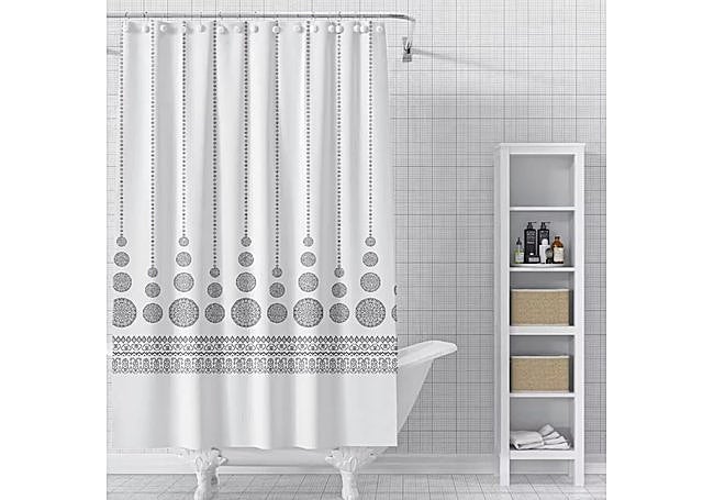 Con tejido de poliéster impermeable y certificado Oeko-Tex Standard 100, esta cortina de ducha de IM INFINITE MARKET mide 180 x 200 cm. Incluye 12 anillas y presenta un diseño de secado rápido. Sus materiales están diseñados para limitar la absorción de agua y dificultar la formación de moho, lo que facilita la instalación y el mantenimiento.