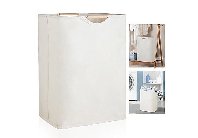 Incluye una bolsa interior extraíble de poliéster y algodón, que facilita el traslado a la lavadora. Las asas permiten moverlo fácilmente y su diseño plegable ahorra espacio. Con capacidad de 72 litros, es ideal para dormitorios, baños o vestidores, brindando una solución práctica y estética.