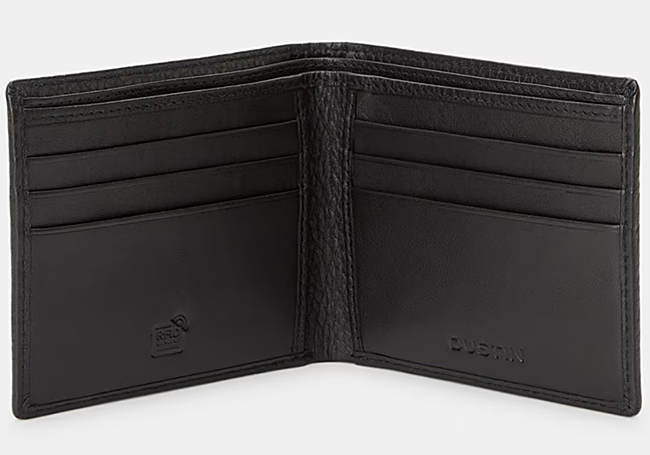 Para aquellos que prefieren ser conservadores en cuanto al estilo de su cartera, este diseño de la marca Dustin es una elección casi por defecto. Estamos ante un modelo clásico a más no poder, de tipo americano, en color negro y con 6 compartimentos para tarjetas, además de dos billeteras interiores. Es perfecta para quien busque una opción compacta para llevar su dinero y sus documentos siempre ordenados, ya que sólo mide 9 x 10,5 centímetros.
