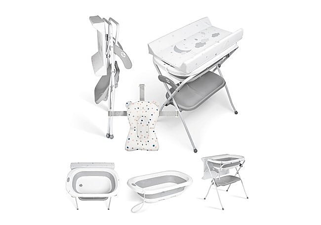 La bañera plegable de MS destaca por su diseño completo y detalles prácticos. Este modelo facilita el baño del bebé e incorpora un cambiador de PVC y una cesta portaobjetos, permitiendo tener todo a mano y mantener el orden durante la rutina diaria.