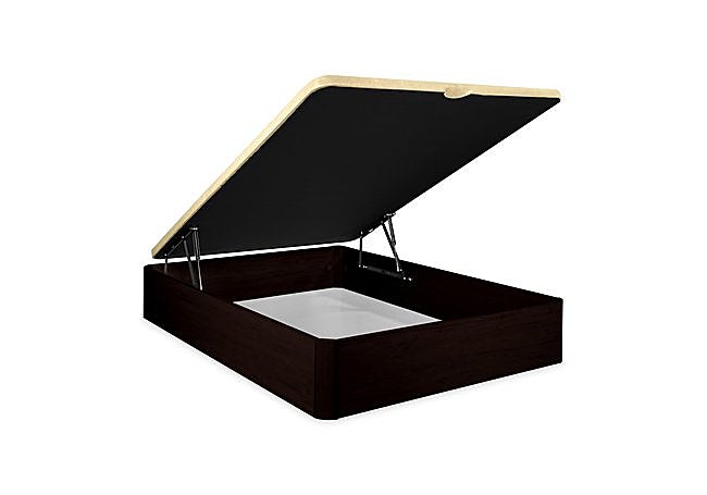 Más que una base para el colchón, el canapé abatible súper reforzado de Somnia Descanso en acabado wengué transforma la organización del dormitorio con su diseño robusto y elegante. Su estructura de melamina y madera ofrece una capacidad interior de 28 cm y altura total de 35 cm, ideal para guardar mantas o ropa de cama.