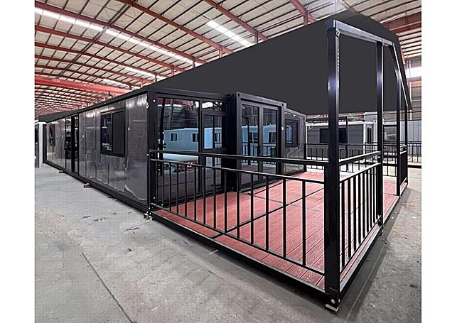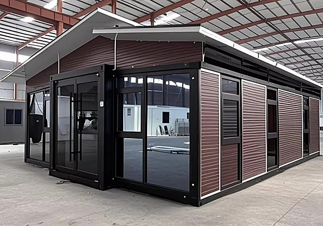 La casa prefabricada plegable de doble ala de Generic es una opción moderna para quienes buscan un hogar flexible. Con un diseño contemporáneo en negro, sus grandes puertas y ventanas de vidrio aseguran un interior luminoso.