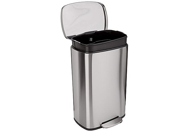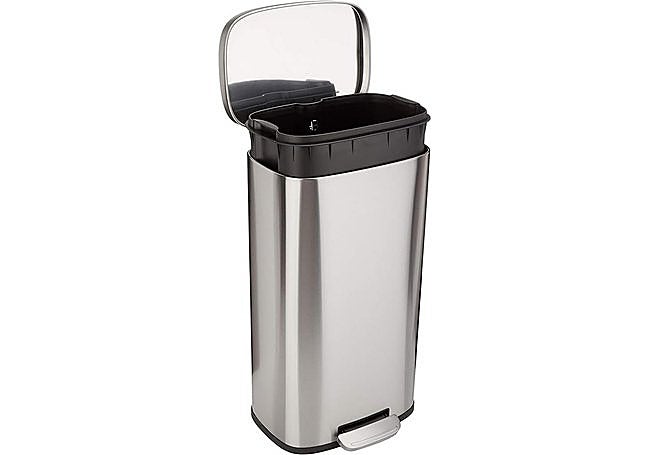 Con su diseño sobrio y contemporáneo, la papelera rectangular de Amazon Basics se integra perfectamente en cualquier cocina moderna o espacio de trabajo. Fabricada en acero inoxidable con acabado en níquel satinado, resiste huellas y manchas, manteniendo su aspecto impecable. El sistema de apertura mediante pedal permite tirar los residuos sin tocar la tapa, y el cierre suave elimina ruidos molestos.