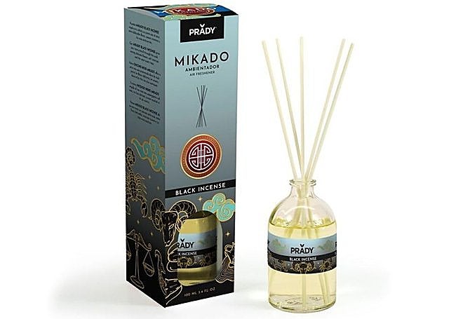 Con un diseño elegante y frasco de 100 ml, el ambientador Mikado Black Inciense de PRADY utiliza varillas de fibra para liberar una fragancia oriental y amaderada que transforma cualquier estancia. Esta combinación olfativa aporta un aire sofisticado y envolvente sin necesidad de electricidad ni calor.