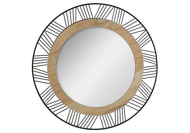 Gracias a su elegante combinación de madera y metal, este espejo redondo de ATMOSPHERA CREATEUR D'INTERIEUR se integra fácilmente en ambientes modernos o acogedores. El diámetro de 45 cm y el acabado marrón aportan calidez y sofisticación a cualquier pared, convirtiéndose en un punto decorativo destacado en salones, recibidores o dormitorios.