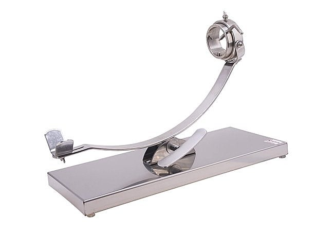 Con estructura íntegramente en acero inoxidable, este jamonero balancín de Flores Cortés incorpora una base de 2 mm de grosor que minimiza vibraciones durante el corte. El sistema articulado permite ajustar el jamón en distintas posiciones, facilitando un corte cómodo y seguro. Cuatro tacos de silicona en la base proporcionan máxima estabilidad sobre cualquier superficie.