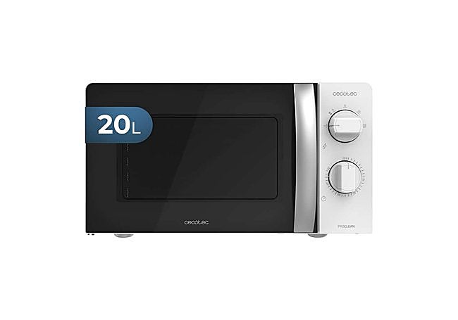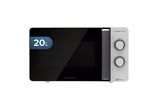 El microondas Cecotec ProClean 3010 ofrece una capacidad de 20 litros en un formato compacto. La puerta FullCrystal y los mandos giratorios facilitan el uso diario, mientras que el revestimiento Ready2Clean en el interior simplifica la limpieza al repeler la suciedad.