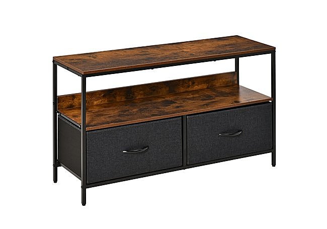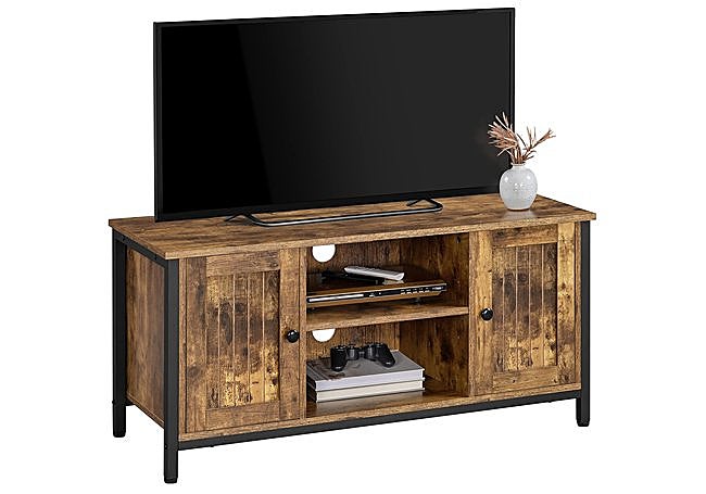 Más que una simple mesa de televisión, el mueble HOMCOM aporta un aire industrial y funcional a cualquier ambiente. Su combinación de madera marrón rústico y detalles metálicos crea una presencia cálida y contemporánea, fácil de integrar en salón, dormitorio o estudio.