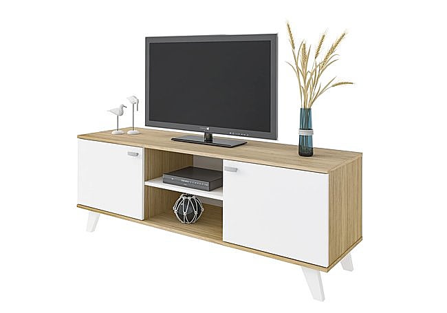 Ofrece compartimentos laterales y estantes centrales abiertos para organizar dispositivos, juegos o películas. Su melamina robusta garantiza resistencia y fácil limpieza, ideal para hogares dinámicos. Este mueble transforma cualquier estancia en un entorno práctico y acogedor, adaptándose a tu ritmo y estilo de vida.