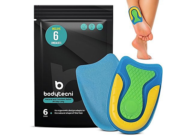 Con un diseño ergonómico, las taloneras Bodytecni están fabricadas en silicona de grado médico, proporcionando amortiguación y confort en cada paso. Su superficie antideslizante asegura un ajuste firme en el calzado, mientras que su formato reutilizable facilita la limpieza y el uso prolongado. El pack incluye seis unidades para adaptarse a diferentes necesidades.