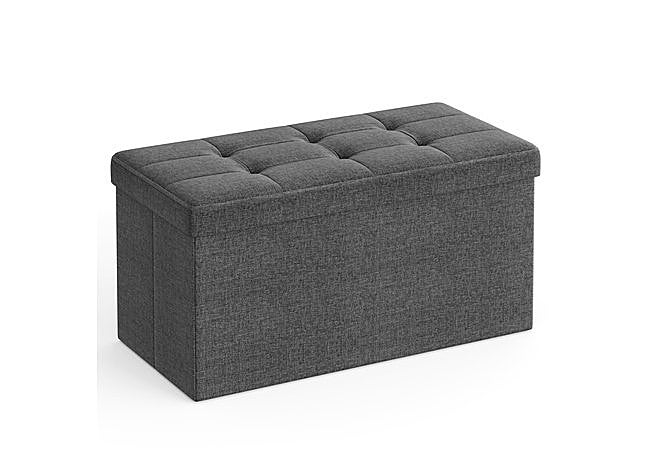 Con diseño elegante en lino gris, el baúl plegable SONGMICS ofrece una superficie capitoné y estructura robusta que soporta hasta 300 kg. Su interior de 89 litros proporciona espacio para almacenar mantas o cojines, mientras que la espuma de alta densidad añade comodidad al sentarse. Se monta y pliega fácilmente, adaptándose a cualquier rincón del salón.