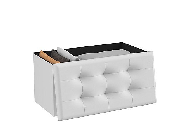 Con estructura plegable y tapizado en polipiel blanca, este puff baúl de JUPPLIES ofrece 80 litros de capacidad y soporta hasta 300 kg. Su tapa acolchada proporciona asiento cómodo, mientras que el formato compacto facilita el almacenamiento. El diseño permite limpiar fácilmente la superficie y su montaje rápido lo hace práctico para cualquier estancia del hogar.