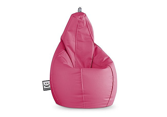 El puff pera HAPPERS, de polipiel fucsia, tiene un diseño ergonómico que mejora la comodidad. Su relleno es ignífugo, proporcionando seguridad adicional, y su estructura ligera incluye un asa reflectante para aumentar la visibilidad en ambientes oscuros. Las costuras dobles y la doble cremallera garantizan una mayor durabilidad del puff.