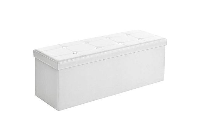 Con líneas limpias y superficie de cuero sintético, este puff baúl de SONGMICS tiene una estructura plegable y robusta, capaz de soportar hasta 300 kg. Dispone de un volumen de almacenamiento de 120 litros y cuenta con un acolchado suave.
