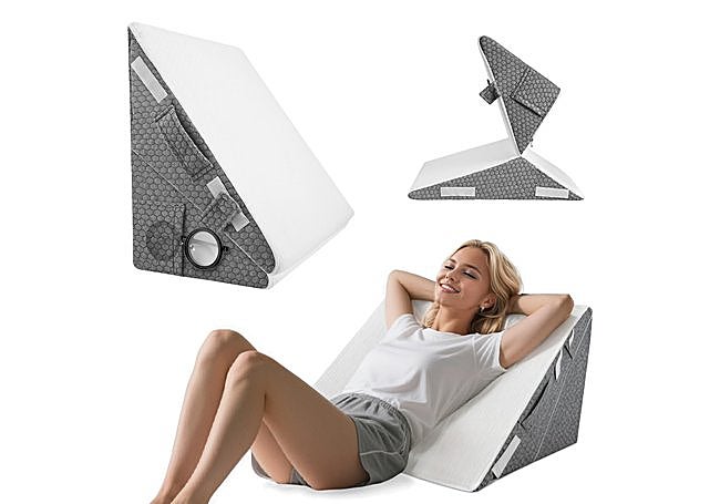 Con un diseño en cuña ajustable, el cojín de lectura Hoyiyobi destaca por su versatilidad y formato ergonómico. Su estructura permite elegir entre dos alturas y varios ángulos, adaptándose tanto a quienes leen como a quienes buscan elevar la cabeza al dormir. La funda de terciopelo cristal, suave y transpirable, se extrae fácilmente para lavar, lo que facilita el mantenimiento diario.