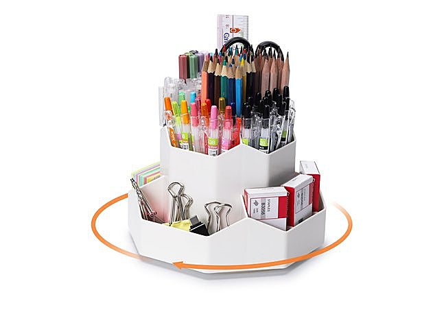 Con diseño giratorio de 360 grados, el portalápices FRETONBA ofrece nueve compartimentos que facilitan la organización de material de papelería y pequeños accesorios. Fabricado en polipropileno resistente, destaca por su gran capacidad y estructura ligera. Su superficie lisa permite una limpieza sencilla, manteniendo el escritorio ordenado y con acceso rápido a todos los objetos esenciales.