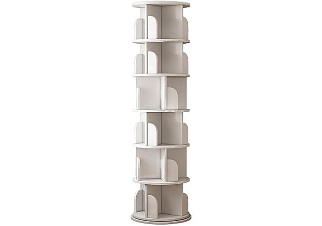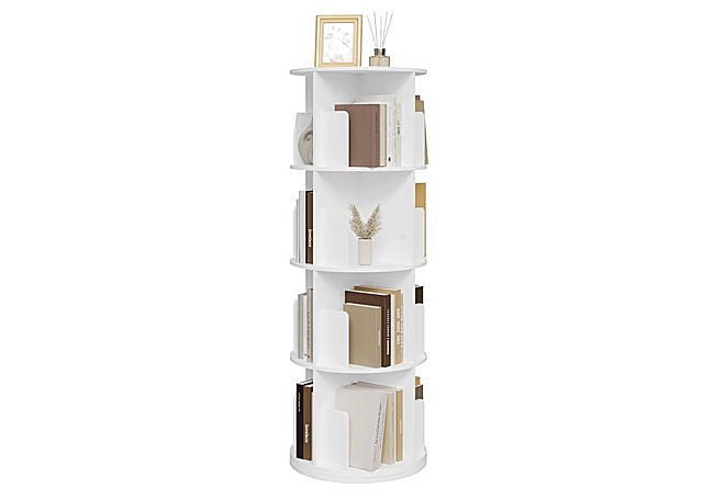 Más que una simple estantería, el modelo giratorio de WAPHOERTE en color blanco destaca por su estructura moderna y redonda con cuatro niveles. Fabricada con paneles de PVC y aleación, soporta hasta 60 kg y su base de 360° permite acceder a libros, plantas o juguetes desde cualquier ángulo, optimizando rincones de dormitorios, oficinas o salas de estudio.