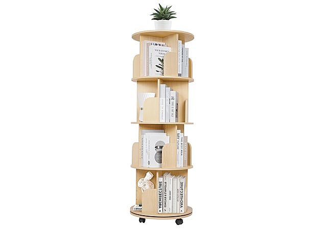 La rotación suave de 360 grados permite un acceso rápido a los libros, mientras que cada nivel admite libros de tamaño A4, papelería o decoraciones, manteniendo el orden en espacios pequeños.