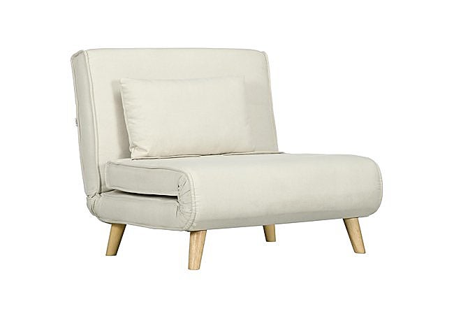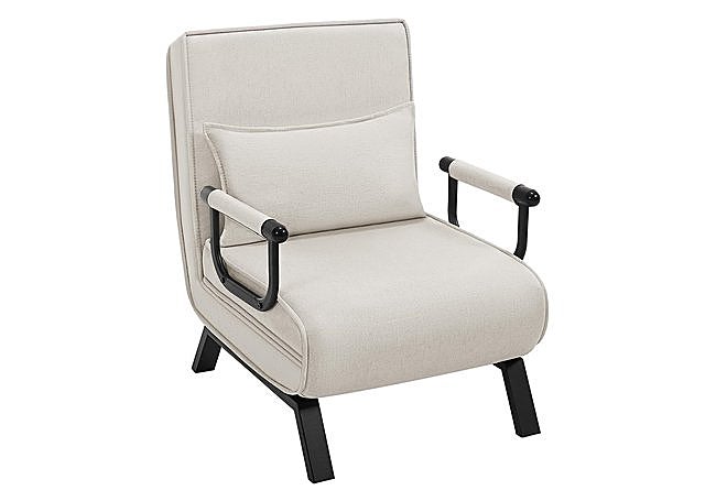 Presenta un diseño 2 en 1 que transforma el sillón en cama individual con un solo movimiento. El respaldo ajustable en seis posiciones permite encontrar la inclinación más cómoda. Su tapizado en lino sintético transpirable y el acolchado suave proporcionan confort, mientras la estructura metálica y las patas de madera de caucho garantizan estabilidad y resistencia en cada uso.
