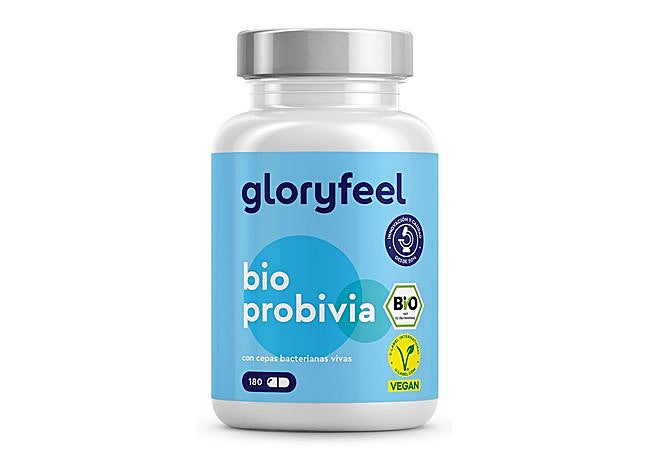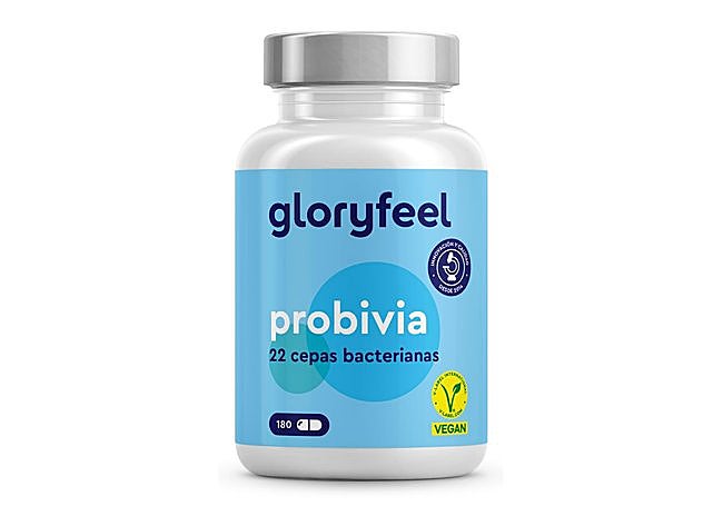 Este suplemento de probióticos y prebióticos de Gloryfeel, con recubrimiento entérico, contiene 22 cepas bacterianas vivas y 10 mil millones de UFC por dosis diaria. Incluye inulina para favorecer el equilibrio de la microbiota intestinal. Su fórmula vegana y sin aditivos mantiene la calidad y eficacia durante toda la vida útil del producto.