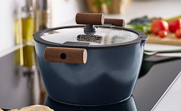 Dentro de esta serie de ollas y sartenes de Ikea, he seleccionado esta pieza de 5 litros de capacidad que destaca por su revestimiento antiadherente de Sol-Gel. Tiene asas de madera para evitar quemaduras y tapa de vidrio. Su precio es de 39,99€.