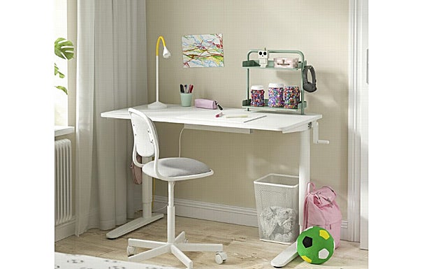 Ikea sabe que los niños son inquietos, así que te ofrece esta opción para que haga los deberes sentado o de pie. ¡Como él prefiera! Podrá regular la altura mediante una sencilla manivela y, además, al estar hecha de melamina, es muy fácil de limpiar. Su precio es de 154€.