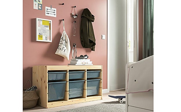 Para que tenga todas sus cosas ordenadas: ropa, juguetes, libros… Ikea te propone esta solución de almacenaje que está fabricada con una estructura de madera resistente y cajas de rejilla en dos tamaños. ¿Lo mejor?, que podéis pintarla juntos como prefiráis. La tienes ahora por 131€.
