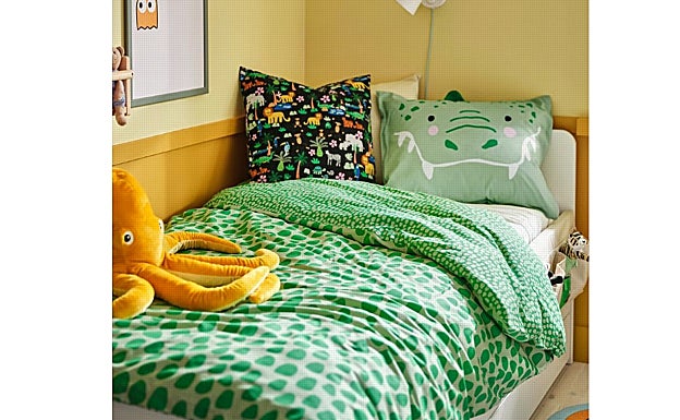Es decir… ¡es un dragón! Los niños necesitan imaginación en sus vidas, así que déjale ser un héroe cada noche con este conjunto de funda nórdica y almohada. Sus medidas son 150 x 200 y 50 x 60 cm. Está en Ikea por 24,99€