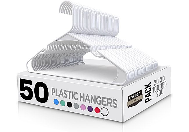 Con diseño delgado y estructura resistente, el paquete de 50 perchas de plástico Utopia Home ofrece ranuras en los hombros para sujetar prendas con tirantes. Su superficie favorece la estabilidad de camisas y blusas, mientras que el formato compacto ayuda a aprovechar mejor el espacio del armario y mantener la ropa bien organizada y sin arrugas.