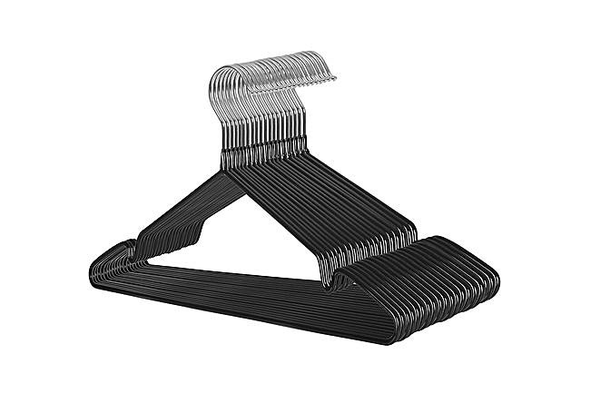 Con estructura metálica resistente y revestimiento de goma, este juego de 20 perchas PORTENTUM en negro tiene un diseño antideslizante y un perfil delgado. Incluye muescas integradas para colgar prendas diversas sin deslizamientos. Presenta un acabado robusto y uniforme, adecuado para soportar ropa pesada.