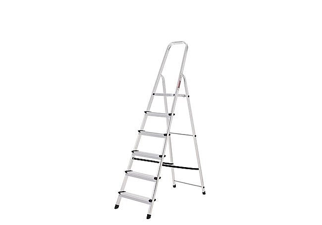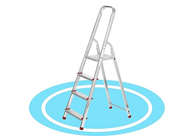 Los peldaños anchos con relieves antideslizantes y las conteras en la base brindan seguridad en cada uso. El formato plegable y su peso de solo 5,8 kg facilitan el almacenamiento en espacios reducidos.