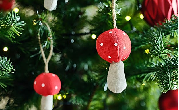 Este año se llevan las setas, así que si quieres conseguir ese toque cozy para tu abeto, aquí tienes este set de 8 setas rojas de tela por un precio de 7,99€.