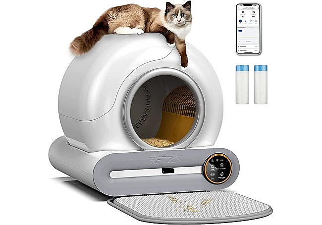 Más que una simple caja, este arenero autolimpiante RETRIN de 65 litros incorpora control por app y limpieza automática, lo que facilita el mantenimiento diario sin esfuerzo. Su diseño espacioso está pensado para familias con varios gatos y se adapta a felinos mayores o con movilidad reducida, gracias a su entrada baja y estructura robusta.