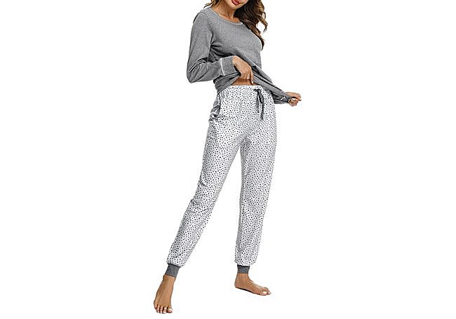 Con algodón suave y tejido transpirable, el pijama de Litherday está compuesto por una camiseta lisa y un pantalón estampado. Incluye cintura ajustable y bolsillos laterales. Disponible en varias tallas y colores, este conjunto presenta un diseño moderno y materiales suaves al tacto, diseñado para conservar el calor sin exceso de peso.