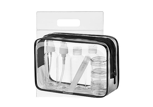 NECESER TRANSPARENTE CON BOTELLAS DE VIAJE MOCOCITO