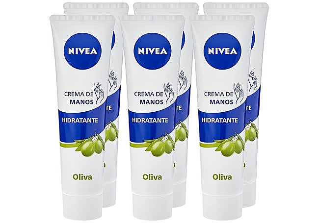 La crema hidratante para manos de NIVEA contiene una fórmula enriquecida con aceite de oliva y se presenta en un pack de seis tubos. El aceite de oliva aporta nutrición a la piel, lo que contribuye a una piel más suave y protegida contra la sequedad.