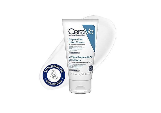 Desarrollada con tecnología MVE, esta crema reparadora de manos de CeraVe combina 3 ceramidas esenciales y ácido hialurónico para hidratar intensamente y restaurar la barrera cutánea. La textura no grasa proporciona alivio duradero a la sequedad, mientras que la fórmula sin fragancia resulta adecuada incluso para pieles sensibles, manteniendo las manos suaves y protegidas durante todo el día.