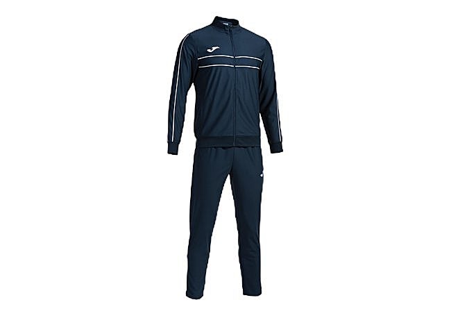 Fabricado con tejido suave y resistente, este chándal de Joma incluye una sudadera con cremallera, bolsillos y ribetes en contraste, así como un pantalón largo con cintura elástica y cremalleras en los bajos. Su diseño permite una fácil combinación con otras prendas.