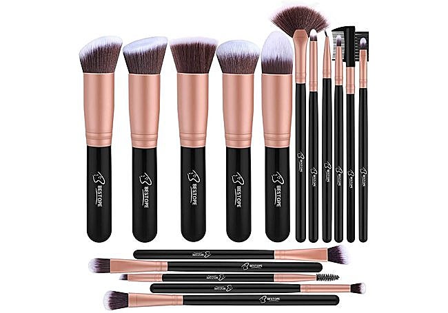 El set de brochas de maquillaje profesional BESTOPE PRO incluye 16 piezas con cerdas sintéticas suaves y mangos de madera negra. La variedad de pinceles permite aplicar base, polvos y sombras con precisión. Está fabricado con materiales resistentes y de calidad.