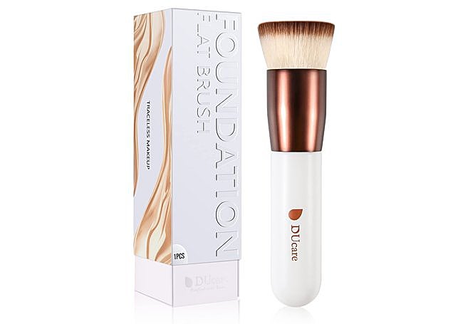 La brocha DUcare Kabuki es una herramienta de maquillaje profesional con cerdas sintéticas densas y un mango de madera ergonómico. Su diseño plano permite aplicar bases líquidas, en crema o en polvo, y difuminar el maquillaje uniformemente. Es adecuada para diferentes tipos de piel y su durabilidad facilita la limpieza.