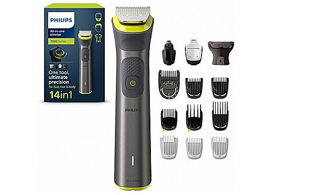 La Philips Serie 7000 es un recortador todo en uno que ofrece 14 herramientas para un cuidado completo. Sus cuchillas autoafilables de acero aseguran un corte preciso y duradero. Con 21 posiciones de longitud, se adapta a cualquier estilo de barba. Su batería de iones de litio proporciona 120 minutos de uso y es completamente resistente al agua, lo que facilita su mantenimiento y limpieza.