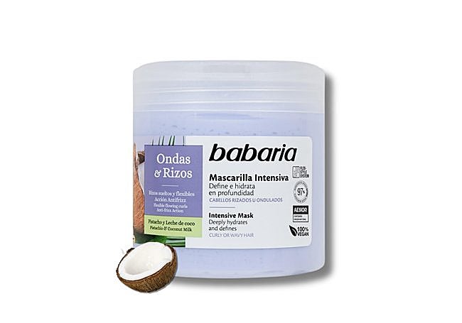 Si buscas una melena rizada llena de vida y sin encrespamiento, la mascarilla Babaria con pistacho y leche de coco aporta una hidratación profunda que transforma la textura del cabello. Esta fórmula vegana está pensada para quienes desean definir sus rizos sin perder ligereza ni movimiento, gracias a su capacidad para nutrir y fortalecer la fibra capilar desde el interior.