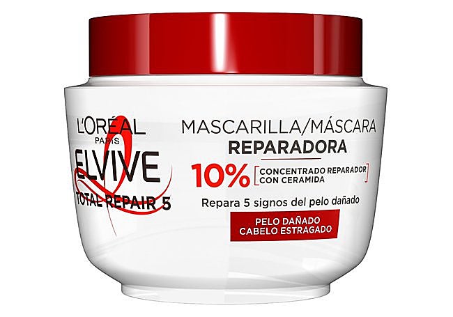 Gracias a su concentración de keratina XS, la mascarilla Elvive Total Repair 5 de L'Oréal Paris es ideal para quienes desean recuperar el cabello tras el uso frecuente de planchas, tintes o secadores. Su fórmula repara desde el interior, fortaleciendo la fibra capilar y combatiendo los cinco signos del cabello dañado: fragilidad, enredos, sequedad, rotura y puntas abiertas.