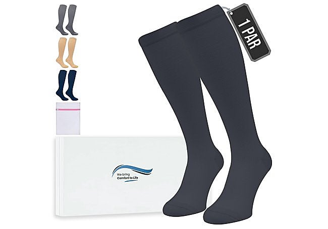 Con un diseño pensado para quienes necesitan tallas grandes, los calcetines de compresión ZFSOCK ofrecen soporte eficaz en pantorrillas anchas. Su formato unisex abarca desde la talla 2XL hasta 7XL y proporciona una compresión de 20-30 mmHg, ayudando a mejorar la circulación y a reducir la hinchazón en la pierna.