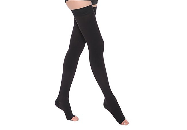 Gracias a su compresión graduada de 23-32 mmHg, las medias ACWOO hasta el muslo proporcionan un soporte firme y constante desde el tobillo hacia arriba. El diseño con punta cerrada y banda de silicona ayuda a que la prenda permanezca en su sitio durante todo el día, evitando deslizamientos y molestias.